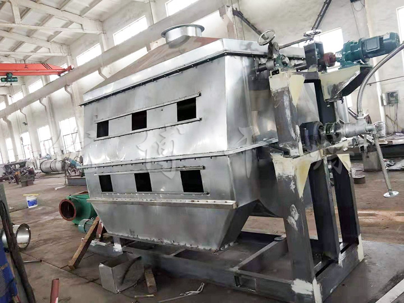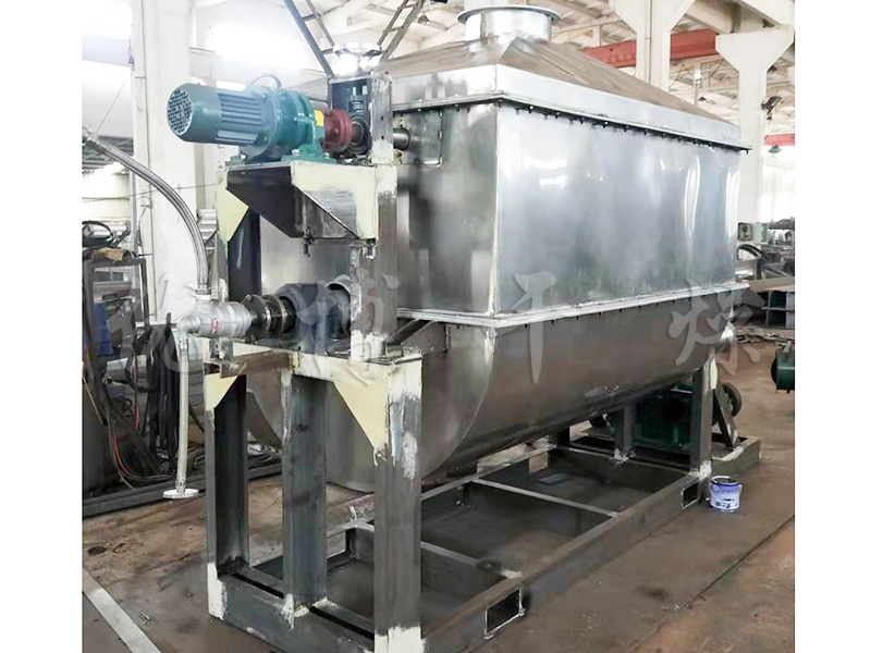 在漿葉及夾套通入 蒸汽,加熱的同時,出料口上部同時通入經(jīng)過加熱后的干空氣進(jìn)一步干燥,這樣大大增加了設(shè)備的干燥強(qiáng)度。蒸發(fā)出來的水分由尾氣帶出干燥機(jī),濕空氣由引風(fēng)機(jī)排出室外。