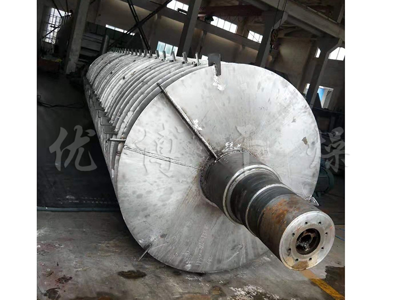 空心軸上密集排列著楔型中空漿葉,熱介質(zhì)經(jīng)空心軸流經(jīng)漿葉。單位有效容積內(nèi)傳熱面積很大,熱介質(zhì)可以是水蒸汽,也可以是熱水或?qū)嵊偷取鳠峤橘|(zhì)通過旋轉(zhuǎn)接頭,流經(jīng)殼體夾套及空心攪拌軸,空心攪拌軸依據(jù)熱介質(zhì)的類型而具有不同的內(nèi)部結(jié)構(gòu),以保證佳的傳熱效果。